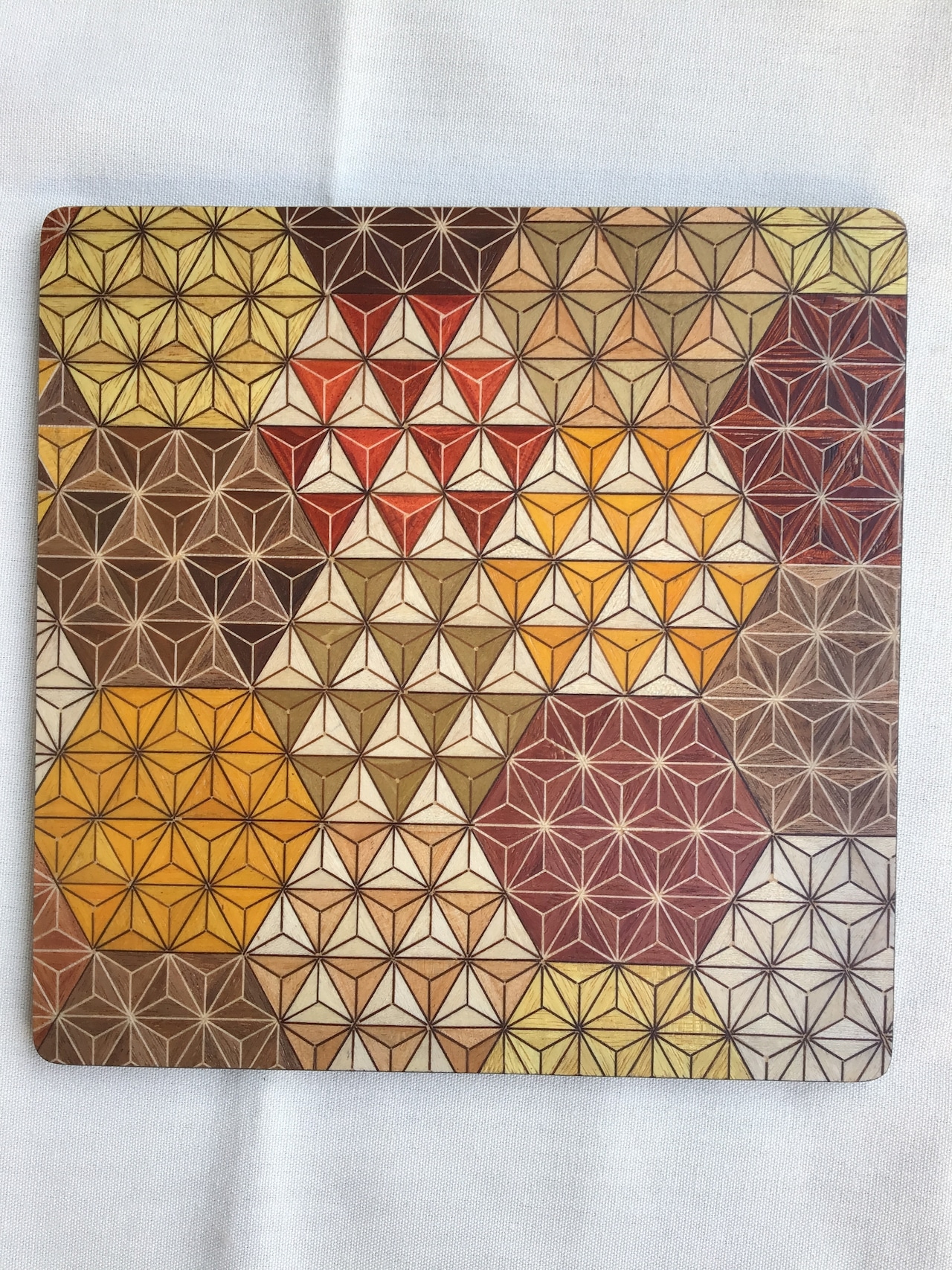 この技法で作ったズク(鉋で薄くスライスした物)を板に張り付けて仕上げました。