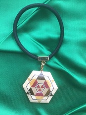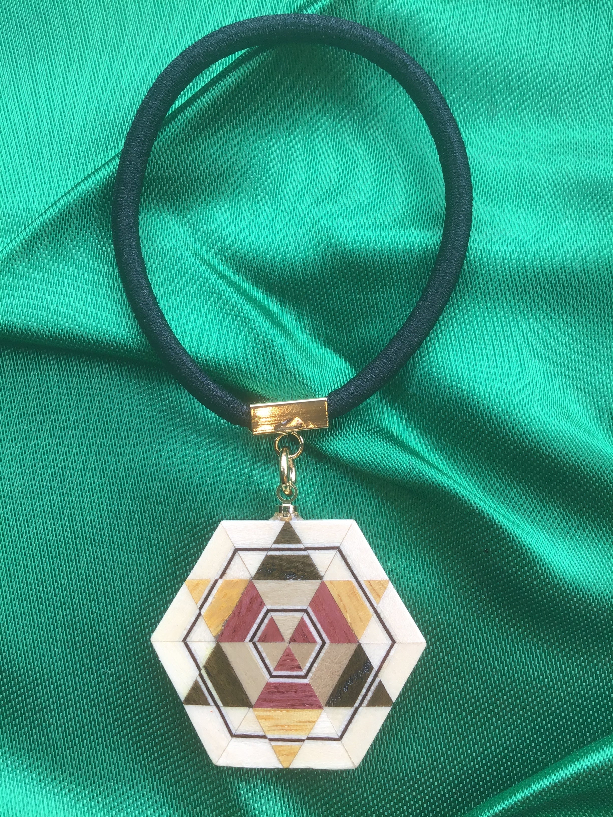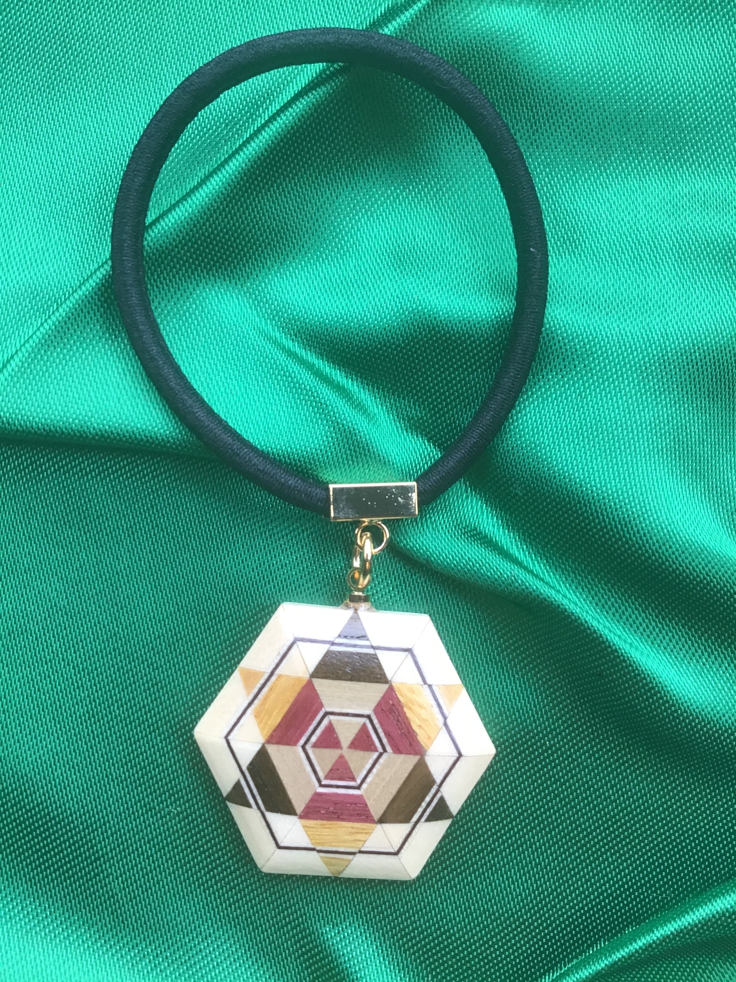天然有色木材を組み合わせた寄木のブロックをマス柄に寄せ。星のように仕上げました。